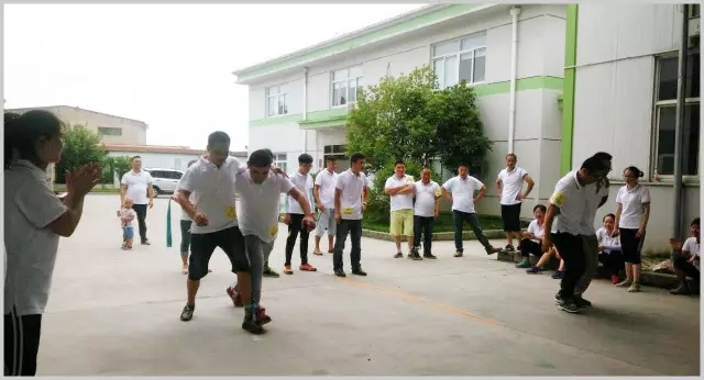 兩人三足特別有趣味性,有看點。看似簡單的動作卻是充滿了挑戰(zhàn)。有的選手將布條綁在踝關節(jié),有的選手則綁在小腿近膝蓋的位置,跑道上演著各種戰(zhàn)術與技巧的大比拼,選手們或走或跑。有人摔跤了兩人相互扶起來調整步伐又繼續(xù)沖刺,各組隊員分秒必爭,勢必一決高下。這項比賽讓我們見識到了員工的團結協(xié)作,堅持不懈與敢于挑戰(zhàn)的精神。