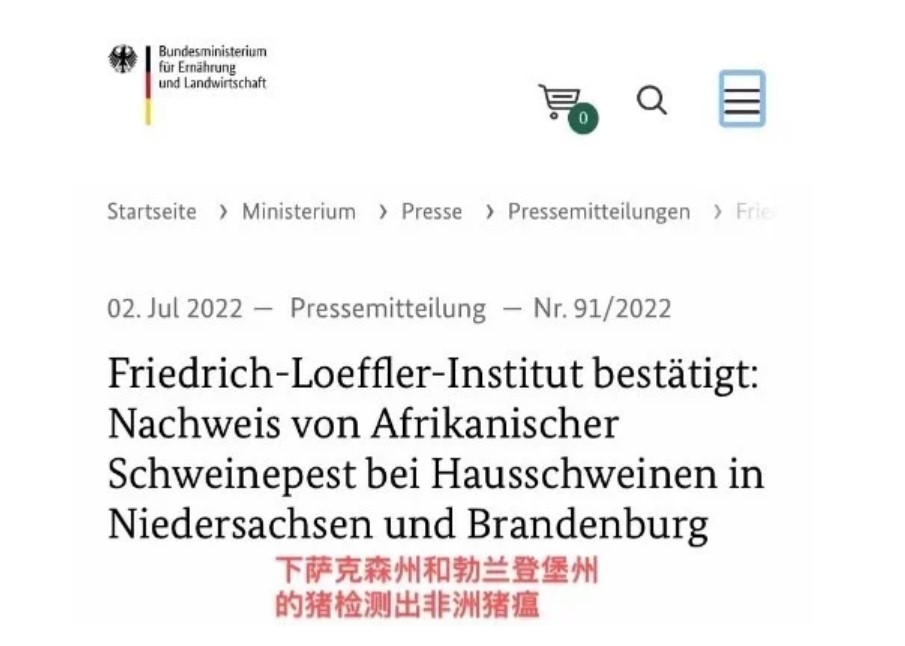 此次下薩克森州埃姆斯蘭縣一個農場爆發的豬瘟是西北部地區的首次病例。2020年9月在德國東部首次發現非洲豬瘟,源頭是一頭野豬。自那以來,德國一直在與非洲豬瘟疫情作斗爭。