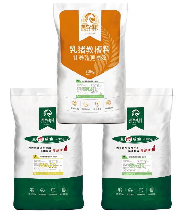 黑馬“點(diǎn)飼成金”教保育肥套餐,包含教槽料SN211、保育濃縮料SN620和育肥濃縮料SN610三個(gè)產(chǎn)品,產(chǎn)品結(jié)構(gòu)簡(jiǎn)單明了,無(wú)需額外添加豆粕,讓生物安全防控工作更加簡(jiǎn)便。同時(shí),該產(chǎn)品套餐采用高氨基酸低蛋白日糧技術(shù)設(shè)計(jì),減少營(yíng)養(yǎng)成分的浪費(fèi),降低糞便處理的環(huán)保負(fù)擔(dān)。