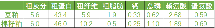 棉籽粕與豆粕營養(yǎng)指標(biāo)對比(%)